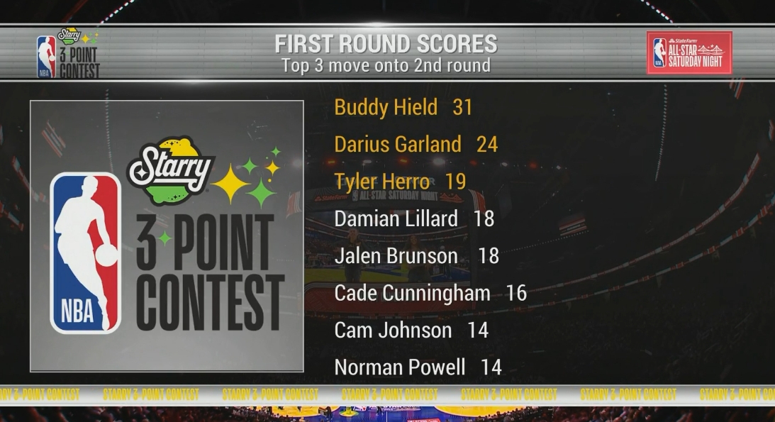 02月16日讯 NBA2025年旧金山全明星周末三分大赛在大通中心进行,参赛球员:布伦森(尼克斯)、凯德-康宁汉姆(活塞)、加兰(骑士)、利拉德(雄鹿)、希尔德(勇士)、卡梅隆-约翰逊(篮网)、希罗(热火)和诺曼-鲍威尔(快船)!