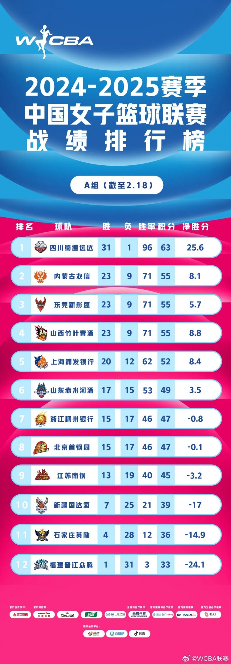 但WCBA官网上的净胜分数据和微博发布的数据有矛盾,本文选了微博发布数据