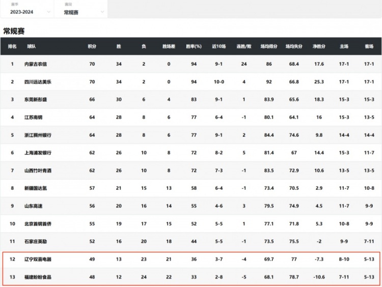而且,在AB分组时,分组也没有完全按照原来的排名对半分,而是搞出了12-9这样的分组,于是上赛季排名第13的福建,就在准备不足的情况下直接压线锁定了季后赛。