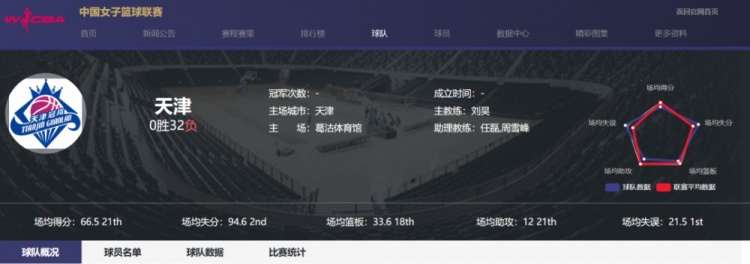 尴尬的是,身处B组的天津冠岚躺得更彻底,0胜32负,场均净负30.5分,成为2014-15赛季以来,第4支赛季全败的球队。