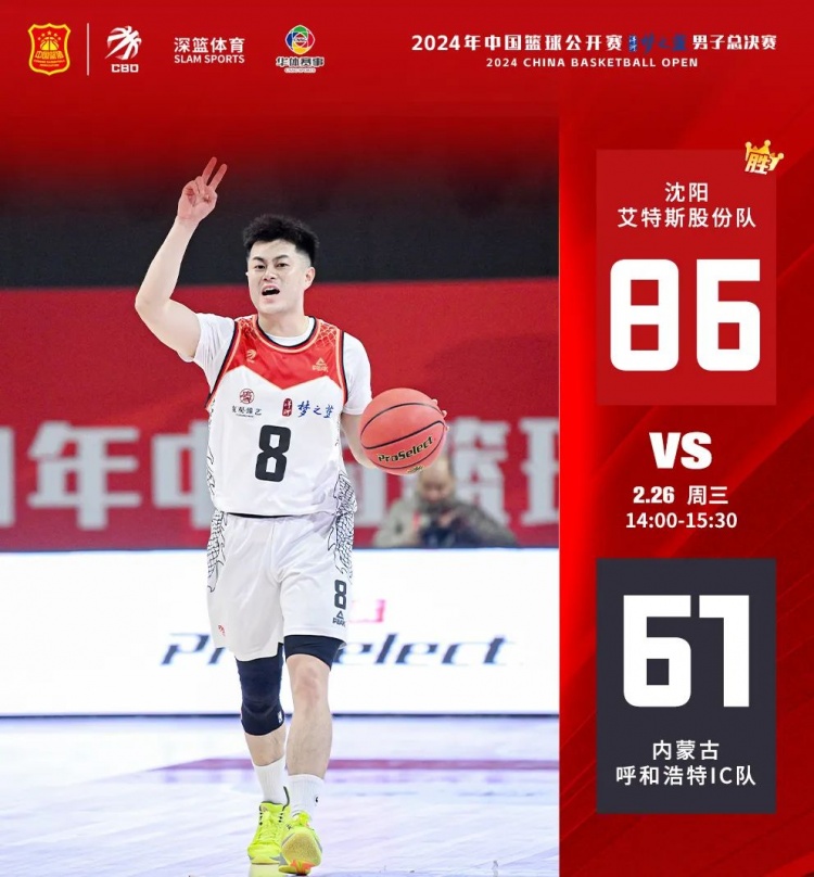 上半场,内蒙古IC 30号乌尼亚尔三分命中,艾特斯股份9号于一帆突进到篮下命中两分。内蒙古IC 27号宝音满都呼篮下强势,艾特斯股份稳扎稳打,通过精妙的配合紧咬比分,首节艾特斯股份16-15领先内蒙古IC。次节,两队加强防守,打得十分胶着。27平后,艾特斯股份吹响进攻号角,前场积极拼抢,并贡献几次精彩的抢断。8号王强一条龙得分,28号张弛篮下打进,艾特斯股份打出一波10-0小高潮。半场结束,艾特斯股份40-31领先内蒙古IC。下半场,艾特斯股份28号张弛、9号于一帆表现依旧强势。内蒙古IC在落后的情况下犯规增多,且命中率降低。最终,艾特斯股份86-61内蒙古IC。