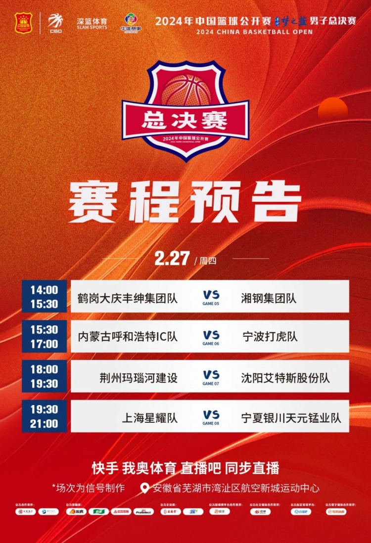 2月26日,2024年中国篮球公开赛洋河梦之蓝男子总决赛在安徽省芜湖市湾沚区航空新城运动中心打响。在首轮四场比赛中,艾特斯股份、宁夏天元锰业、宁波打虎、湘钢集团取得胜利。