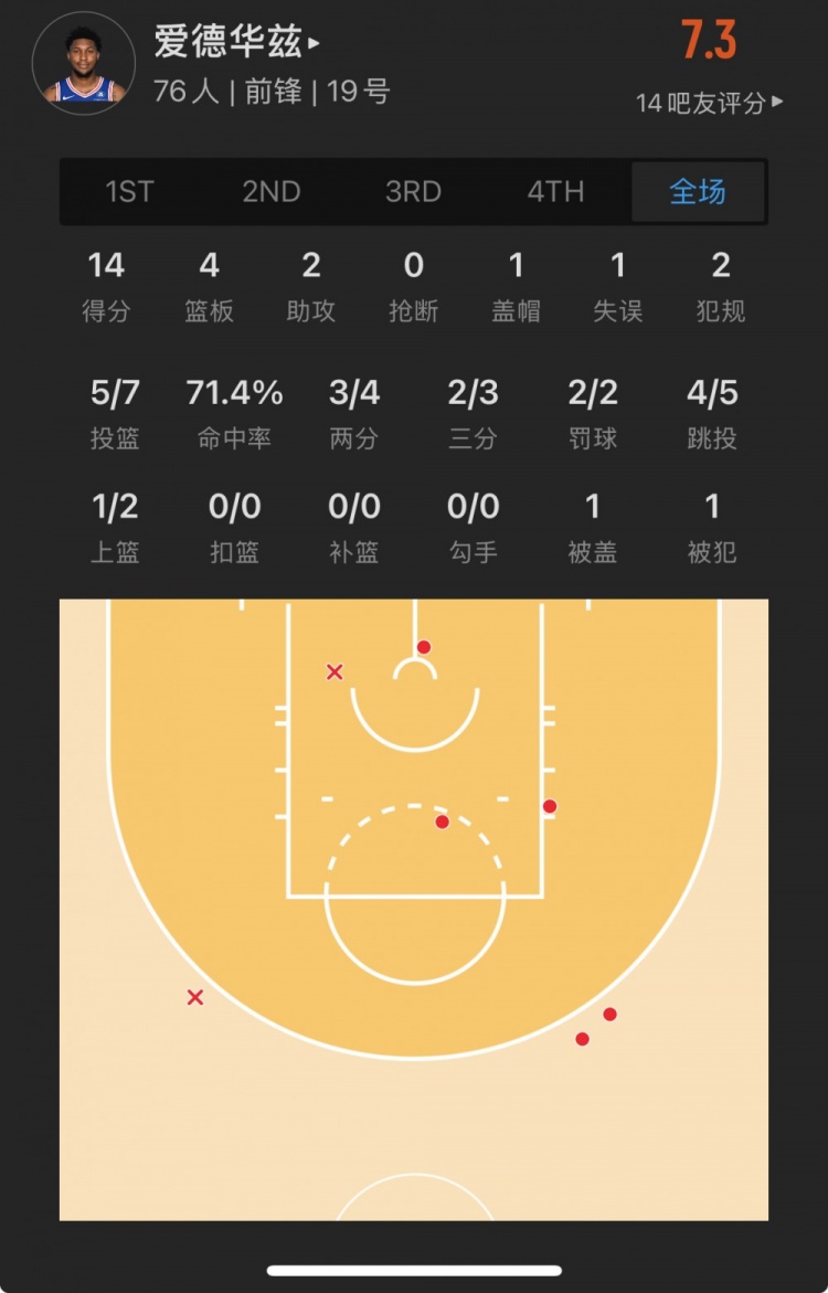 76人41号秀 阿德姆-博纳 登场12.0分钟
