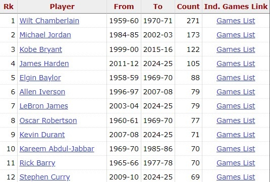 据统计,这是库里生涯第70场比赛40+,追平贾巴尔和里克巴里,并列历史第10。