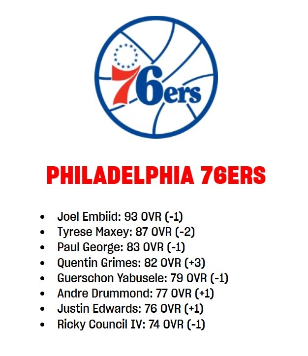3月7日讯 NBA2K官方更新了各队球员的能力值,76人球员变化情况如下: