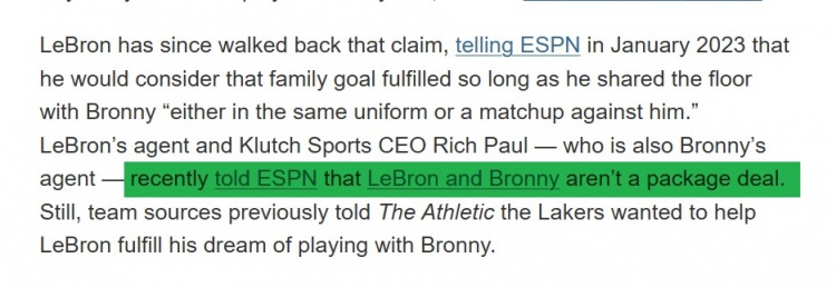 到了2024年6月20日选秀大会前夕,詹姆斯父子的经纪人里奇-保罗在接受ESPN采访时透露,布朗尼只为湖人和太阳两支球队试训过。