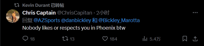 球迷二:在菲尼克斯没人尊重你,只是顺带一提哈!
