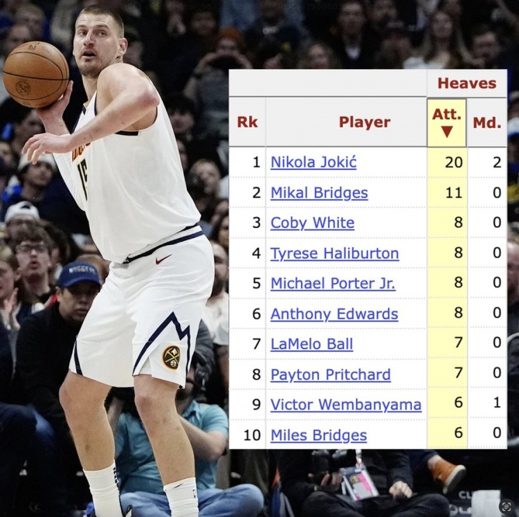 本赛季后场三分投篮:约基奇20中2 大桥11中0 文班亚马6中1