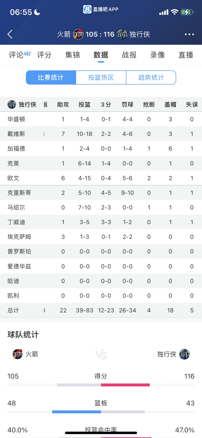 把火箭帽懵逼!独行侠18次盖帽创队史纪录 加福德6次 浓眉首秀3次