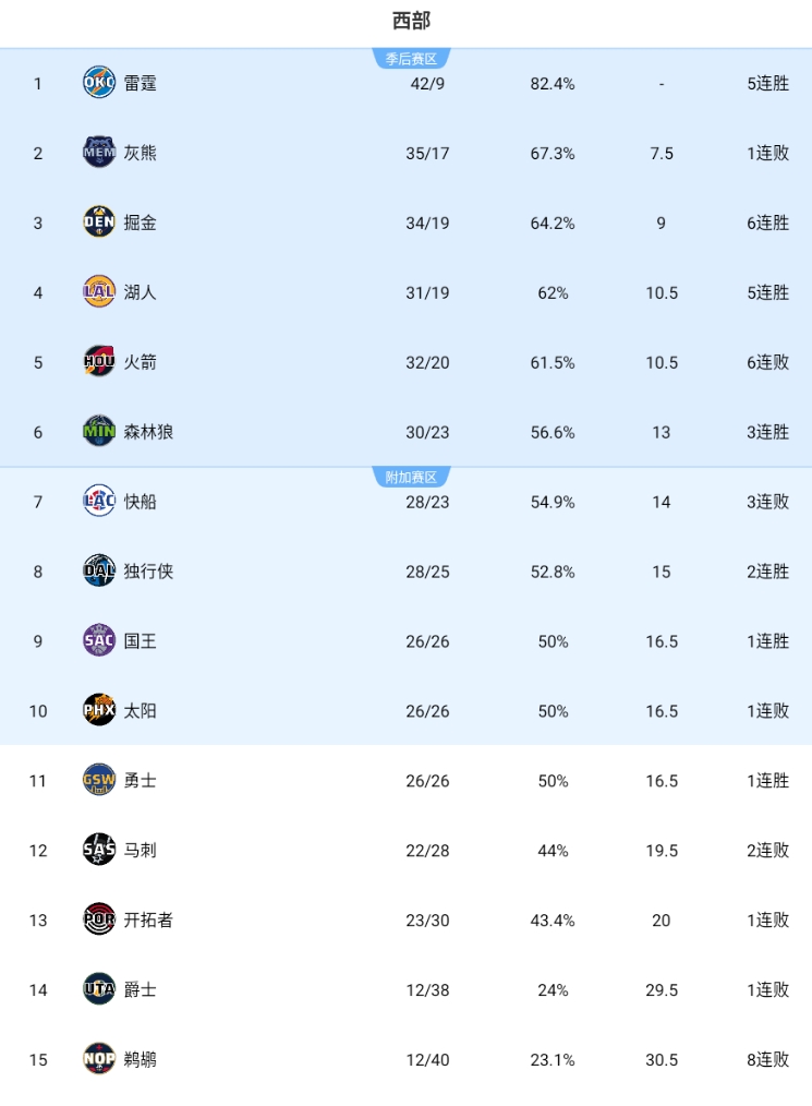 国王战绩来到26胜26负,战绩追平太阳和勇士,凭借排名规则重回西部第九。太阳输球跌至第十,勇士被挤出附加赛区。