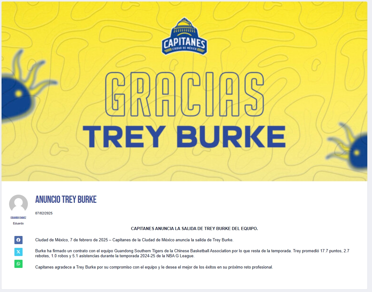 G联盟墨西哥城队长官方:特雷-伯克正式离队并与CBA广东宏远签约