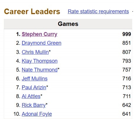 这样一来库里解锁常规赛生涯第1000场比赛,勇士队史首人!