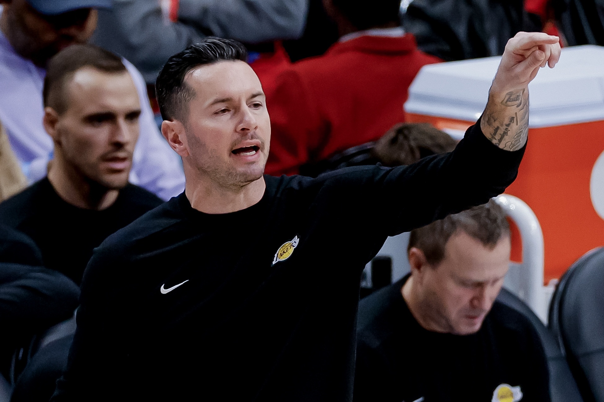 具体的阵容选择还有待观察。例如,让海斯和贾里德-范德比尔特一起上场的决定似乎有点奇怪,因为他们是湖人队核心轮换阵容中的两名非射手球员。但这里有一个明确的逻辑。在赛季开始前,雷迪克曾表示——哪怕只是开玩笑——他希望湖人队每场比赛投50个三分球。很明显,这并没有发生。只有掘金队、猛龙队和快船队比湖人队投得更少。但在周二对阵爵士队的比赛中,湖人队出手了42个三分球,追平了他们本赛季三分球出手次数第四高的纪录。