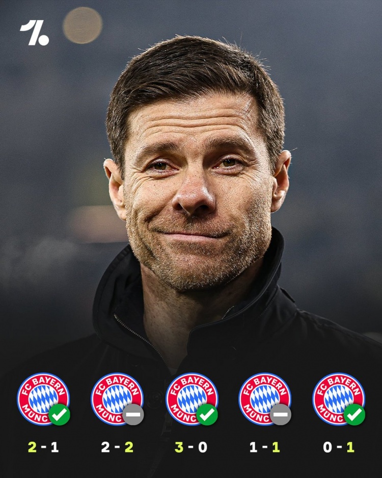 据媒体统计,阿隆索出任勒沃库森主帅以来5次对阵拜仁,战绩3胜2平保持不败。