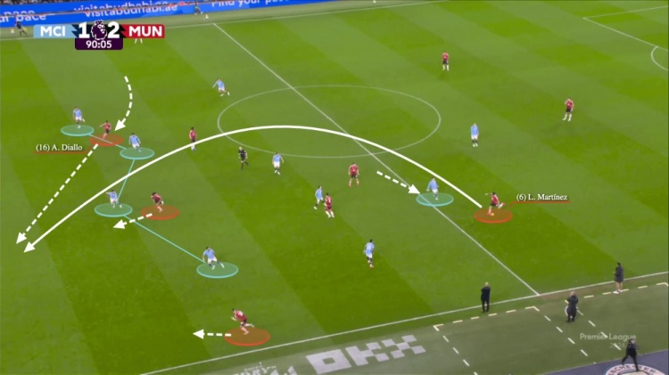 曼联的制胜进球是令人震惊的,尤其是上半场早些时候利桑德罗-马丁内斯在身后为霍伊伦送出了几乎相同的传球。曼城根本就没有吸取教训。