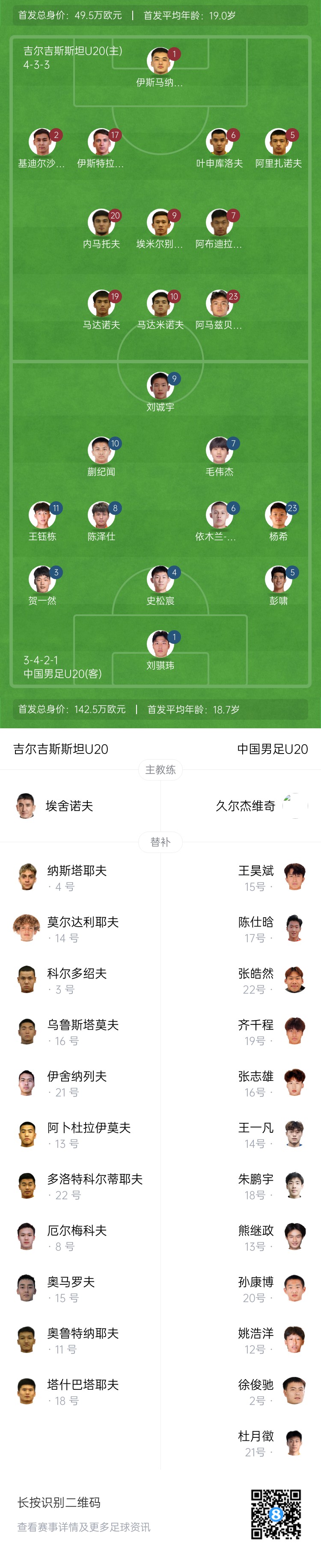 A组首轮比赛中,U20国足2-1击败卡塔尔U20,暂列小组第二;吉尔吉斯斯坦U20则以1-5惨败于澳大利亚U20,暂列小组垫底。