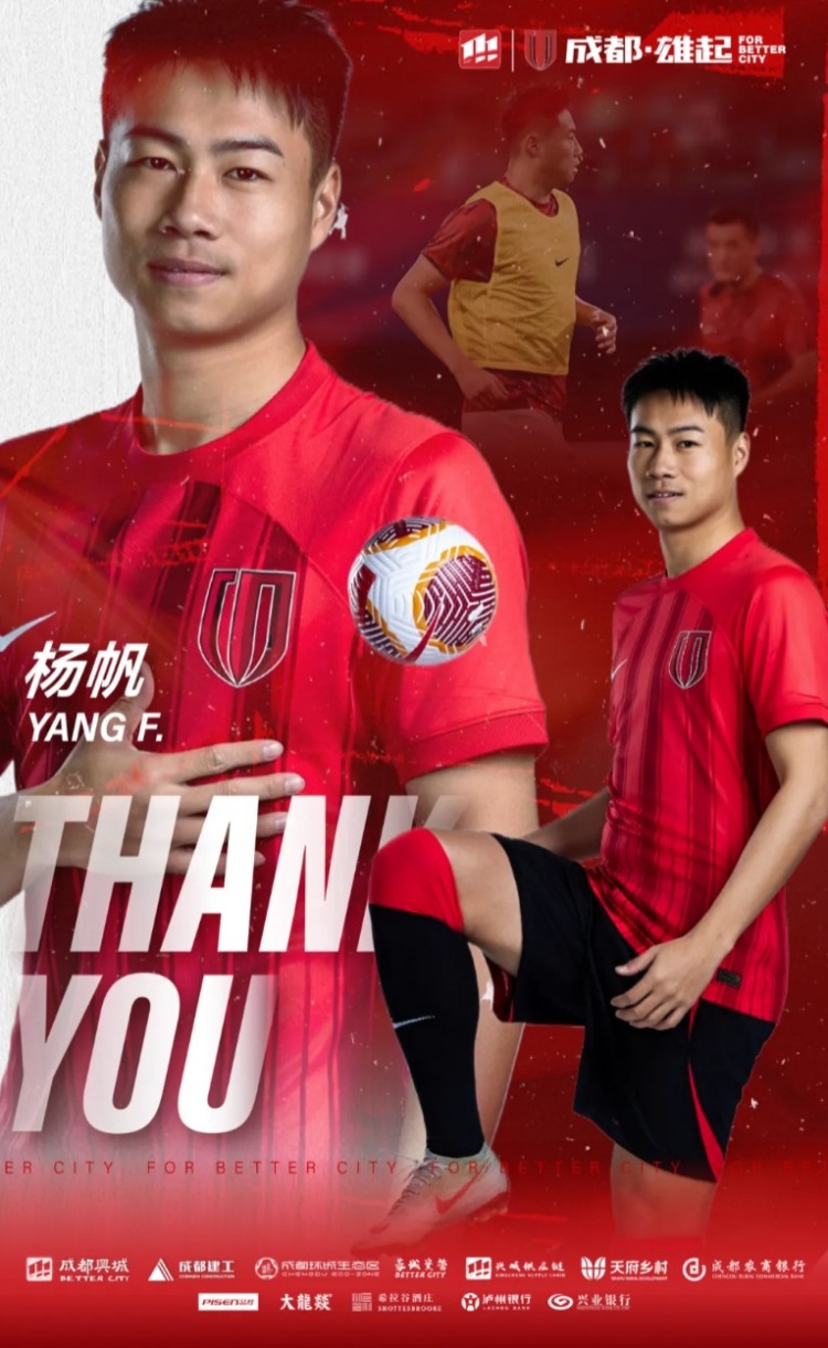 成都蓉城官方:刘涛、耿晓峰、杨一鸣、帕拉西奥斯等8位球员离队