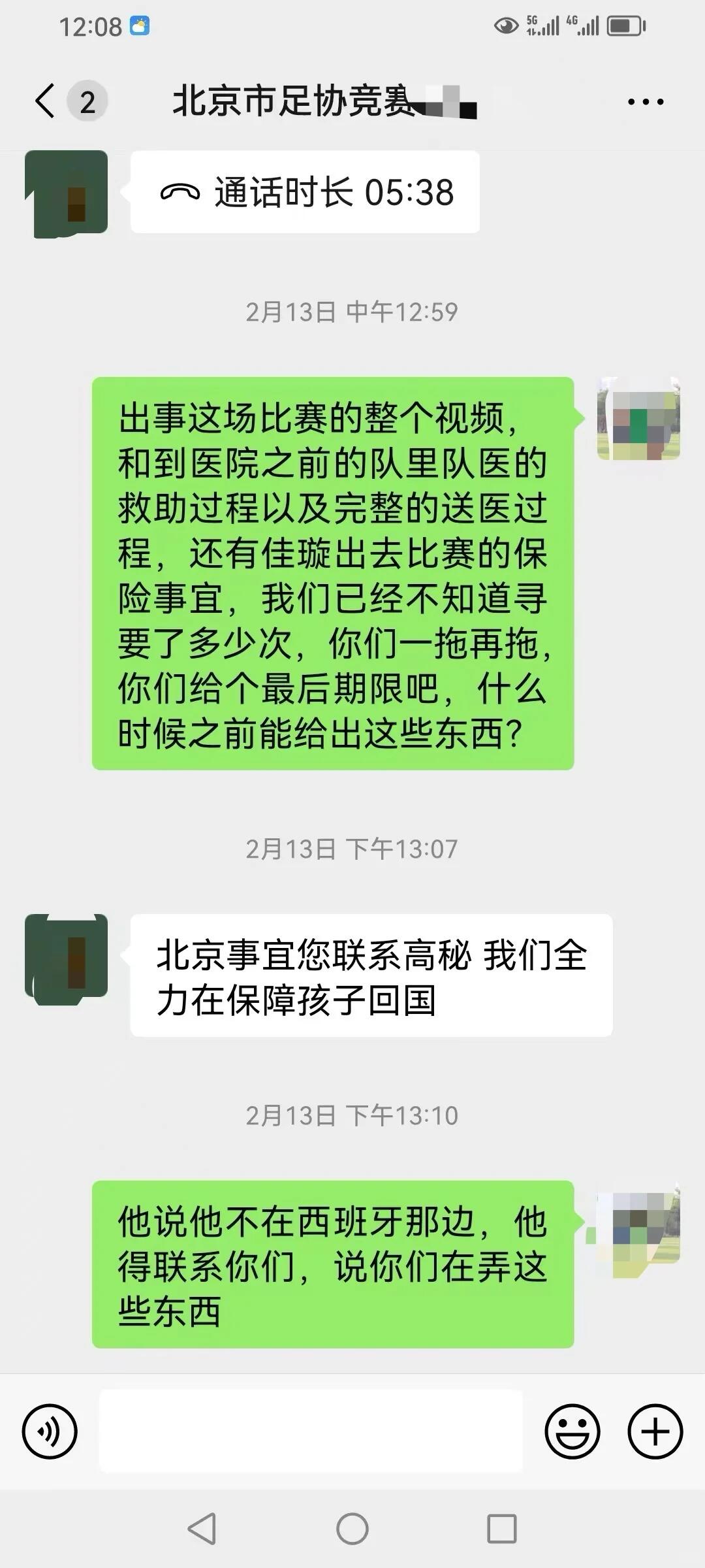 嘉璇目前病情依旧没有好转,现在也只是维持身体机能,我们也逐渐接受了现实,住院这么多天,北京足协只有第一天转运的时候来了些人,之后再也没有见过他们的人,而且家属一直追要的比赛视频,和到医院之前的队里队医的救助过程以及送医过程,还有嘉璇西班牙比赛的保险资料,被一拖再拖,迟迟没有得到答复!家属只想知道一个真相,为什么这么难?