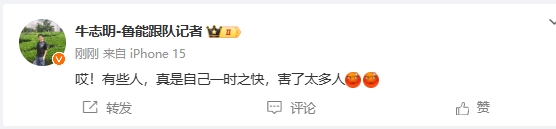 02月19日讯 泰山突然退出亚冠,泰山跟队牛志明发社媒表达愤怒之情。