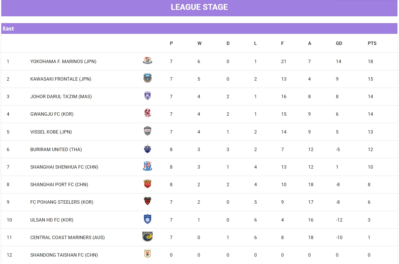 亚冠官方确认东亚区8强:山东积分清零,上海海港、上海申花晋级