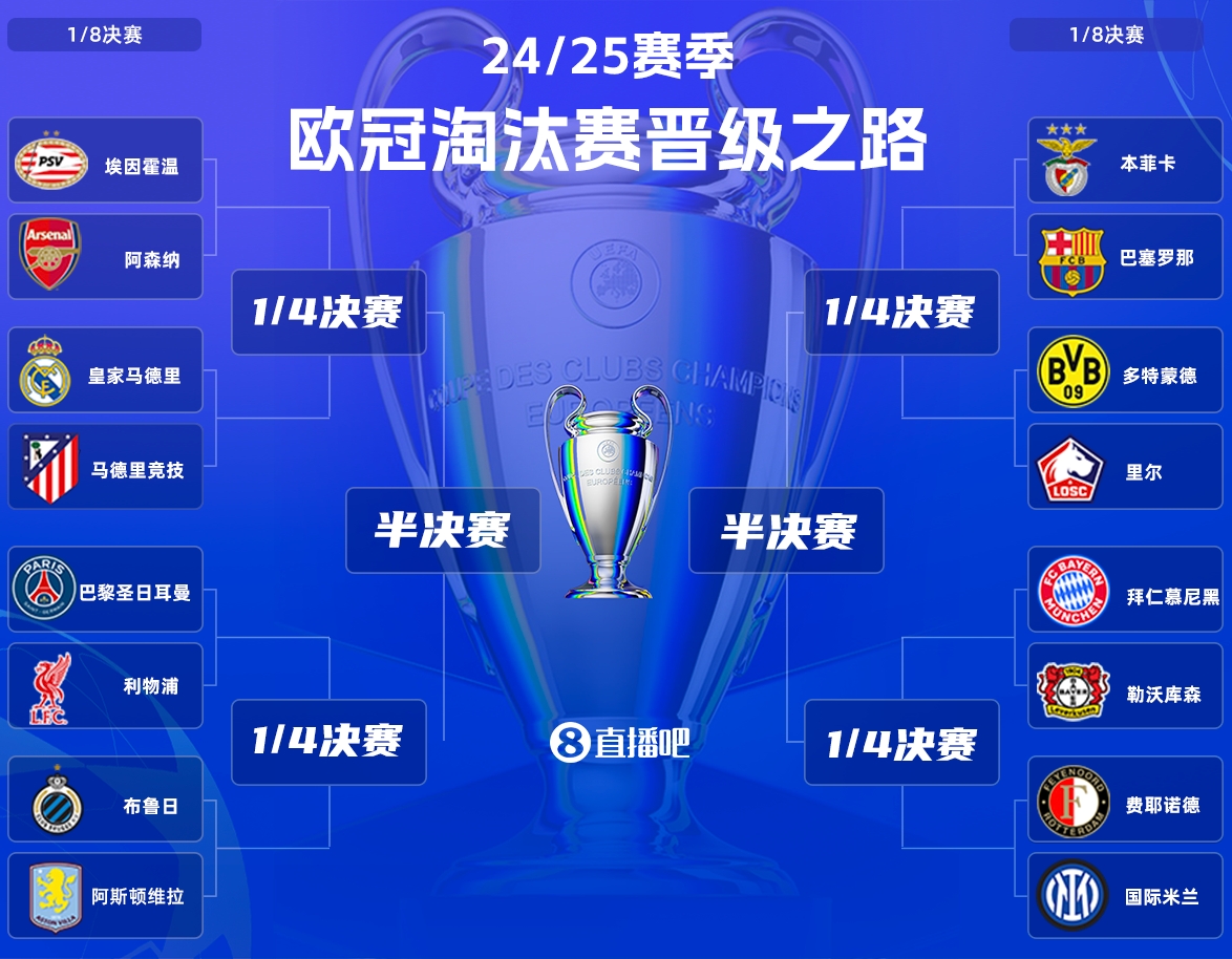 02月21日讯 2024/25赛季欧冠淘汰赛抽签结果已经出炉,皇马与马竞上演马德里德比,拜仁与药厂将本赛季第4次交手,巴黎抽到利物浦。1/8决赛捉对厮杀,争夺8个晋级名额。