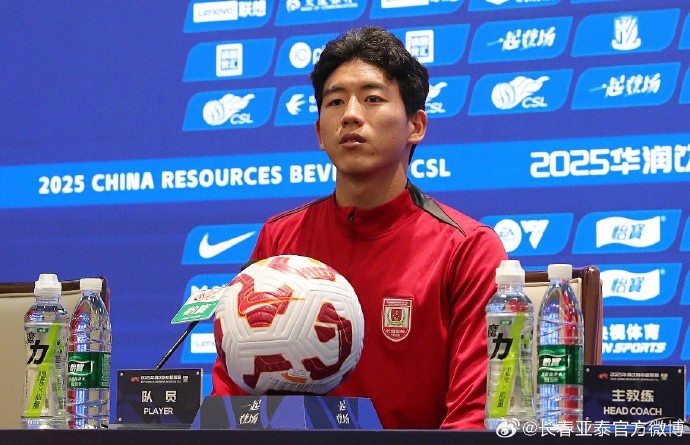 2月21日14时15分,长春亚泰赛前发布会在上海体育场举行。主帅谢晖带着景泊羲出席。