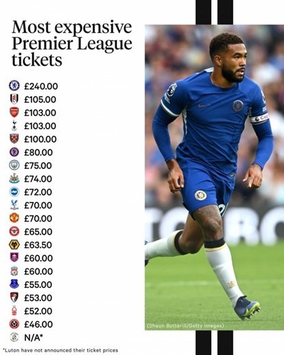 [4] TA列英超球队票价排名:切尔西240磅最贵,头尾相差五倍多. . 2023年8月24日.