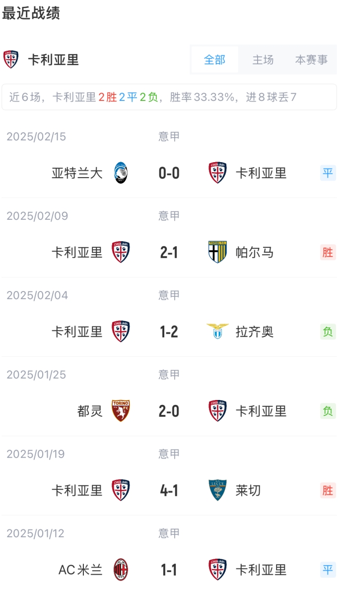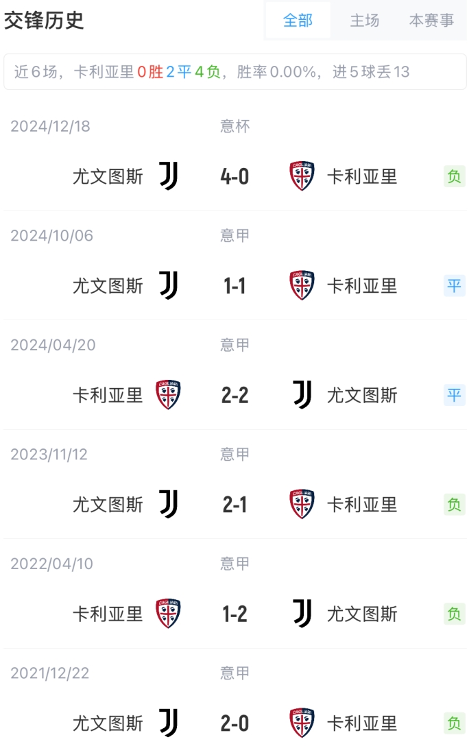 2月24日讯 意甲第26轮,卡利亚里主场迎战尤文比赛即将打响。赛前首发出炉。