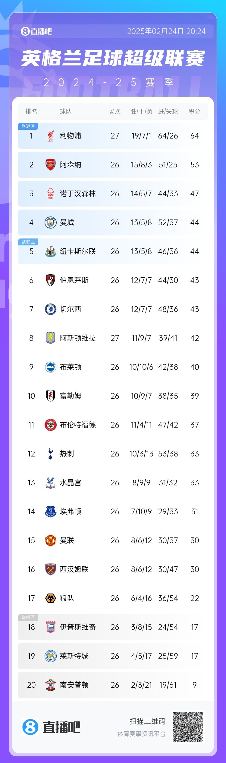 2月24日讯 在本轮英超,阿森纳0-1不敌西汉姆,与榜首利物浦的差距已经来到11分(少赛一场)。