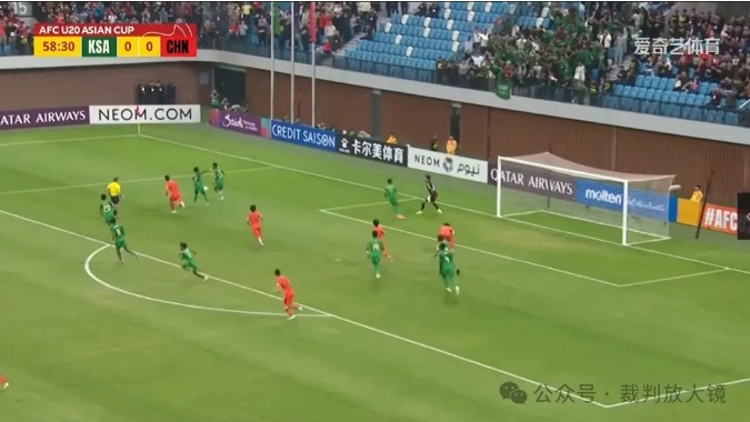 视频中也能看出提前进入的沙特队员将球解围了,有人说这不是触球了吗?其实规则的提前进入的队员触球或与对方争抢球这是一个主语,也就是说以上两种情况判罚的前提是这两种行为阻止了对方队员得分、尝试进球得分或创造进球得分情况的任意一种。对提前进入的行为应采用对守门员提前移动的判罚原则,即:仅在造成阻碍时才被判罚违规。