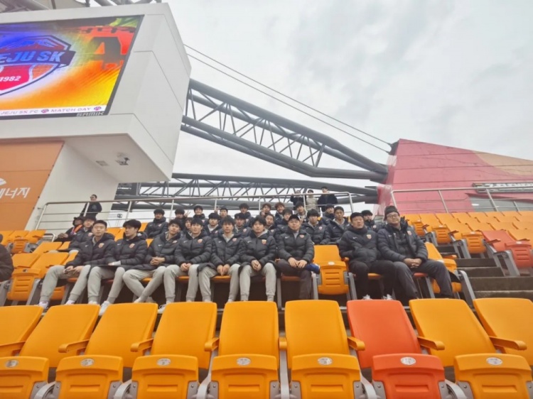此外,为了让队员们更好地了解当地的足球文化,也作为努力训练之余的调剂,教练组还在冬训期间组织全队观看了K联赛济州SK对阵首尔的比赛,希望队员能够在观赛的过程中有所收获。