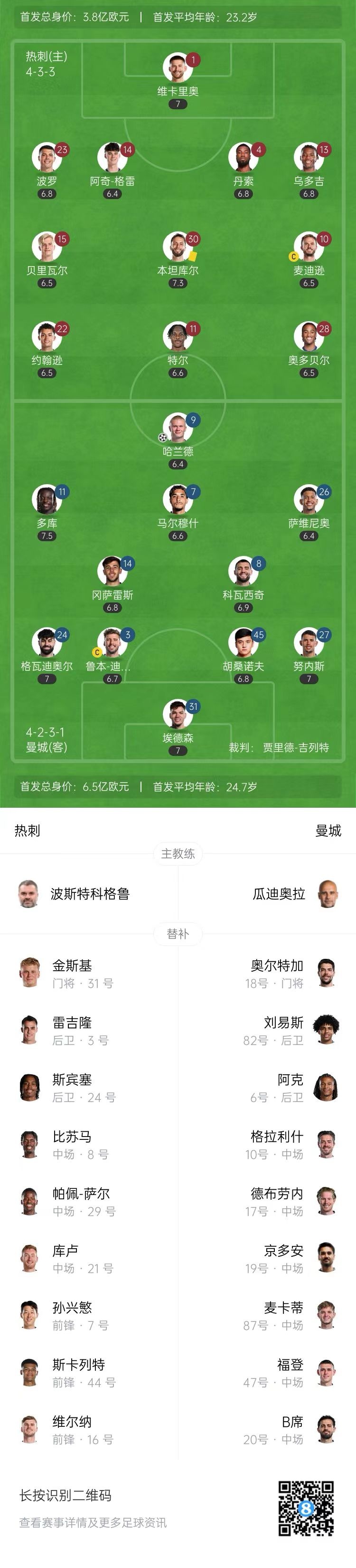 标签: 足球 英超 曼城 热刺 瓜迪奥拉 哈兰德