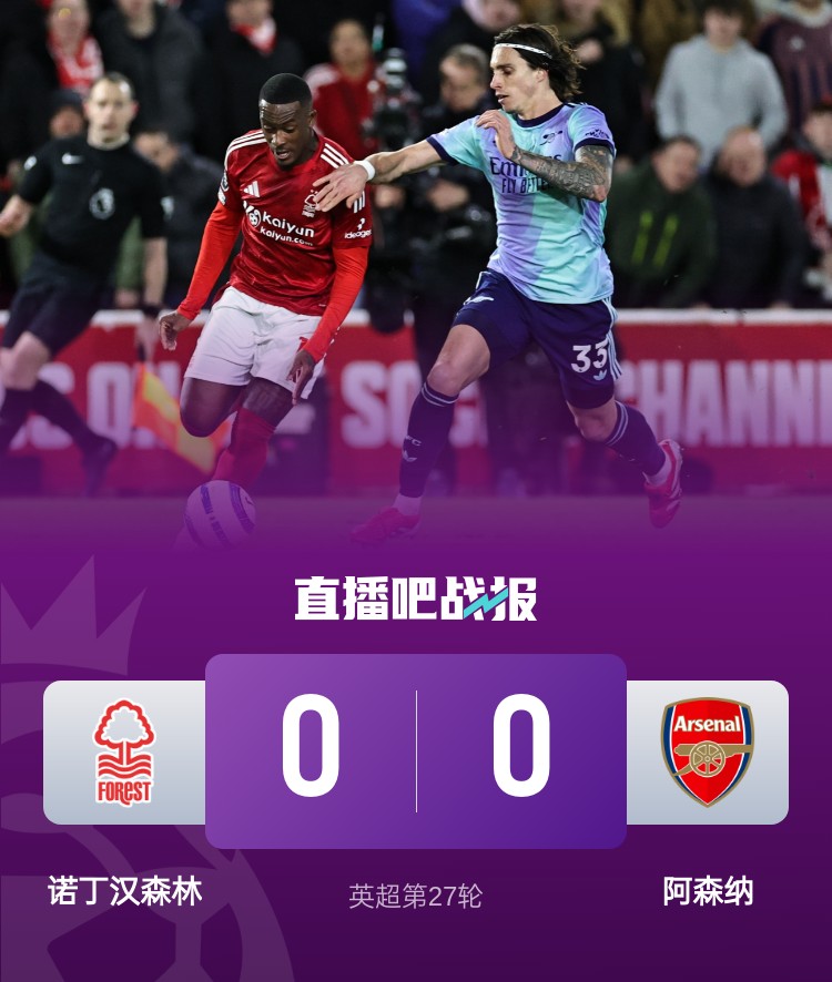 两轮不胜!阿森纳0-0森林距榜首13分 卡拉菲奥里中柱拉亚神扑