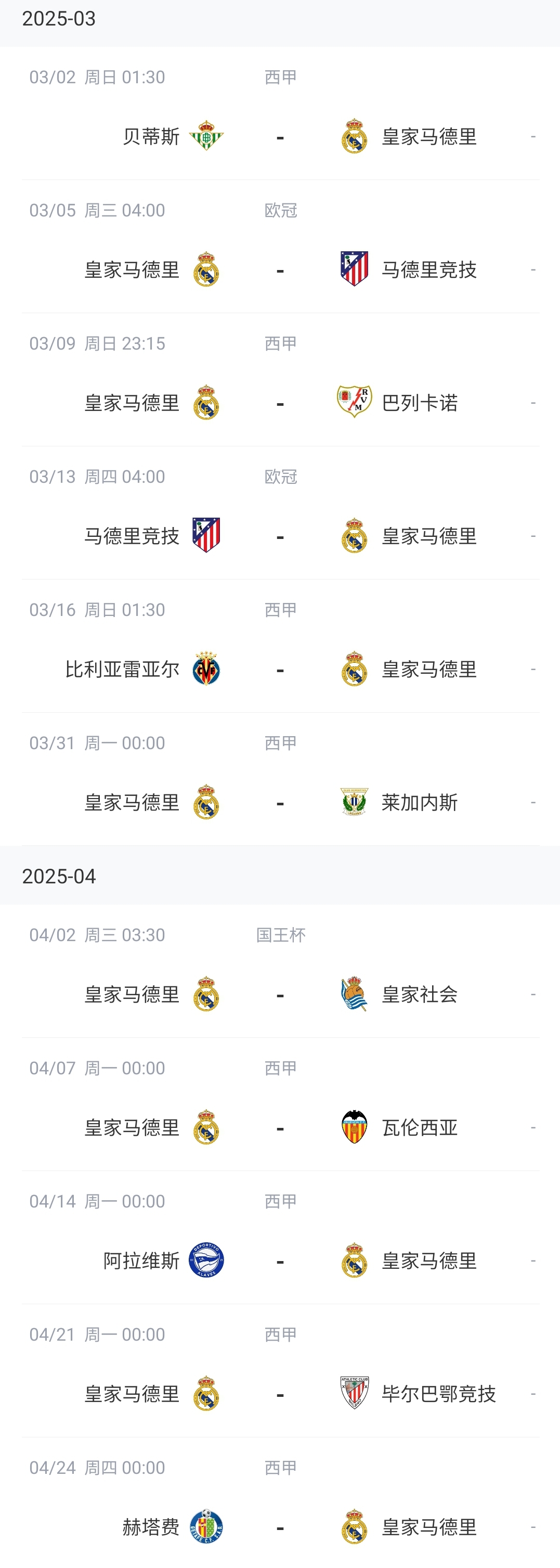 皇马未来赛程