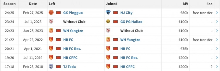 2月27日讯 根据德国转会市场网站页面显示,胡人天已经加盟中甲南京城市。