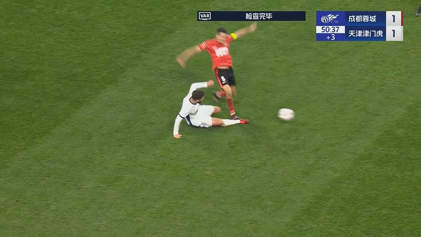 蓉城少打一人!周定洋踩中哈达斯小腿,主裁看VAR后出示直红!