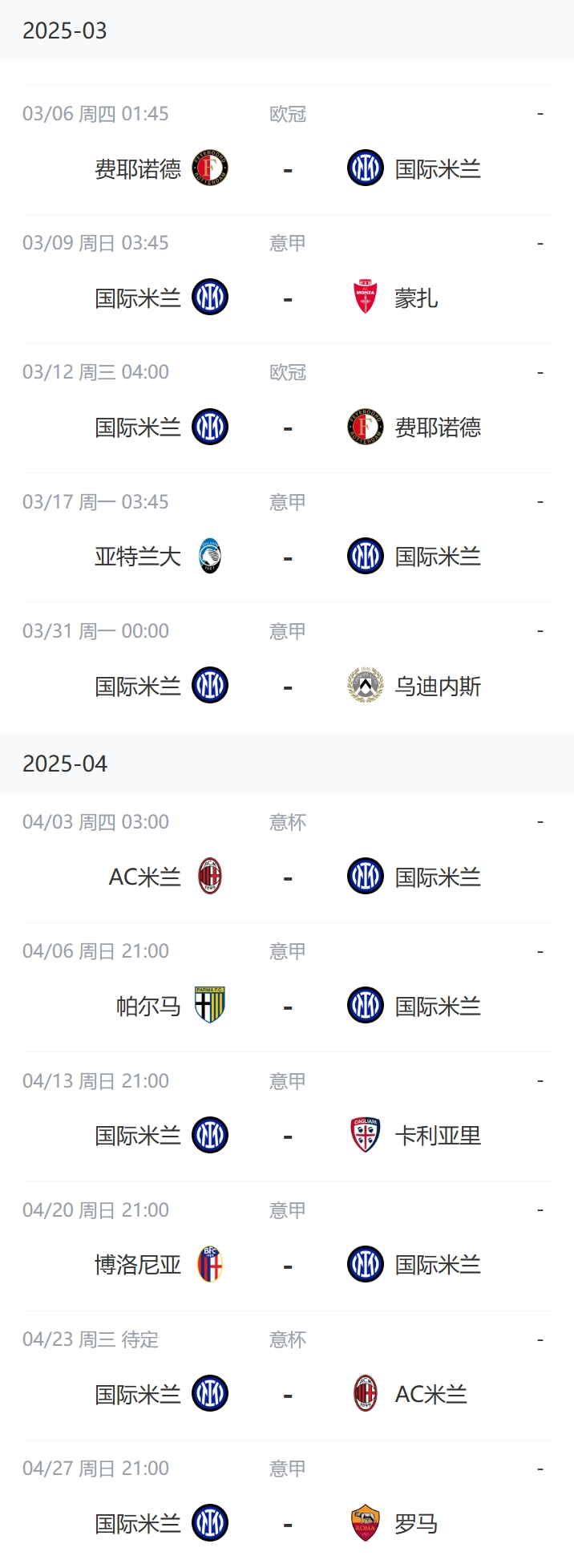 国米未来两月赛程