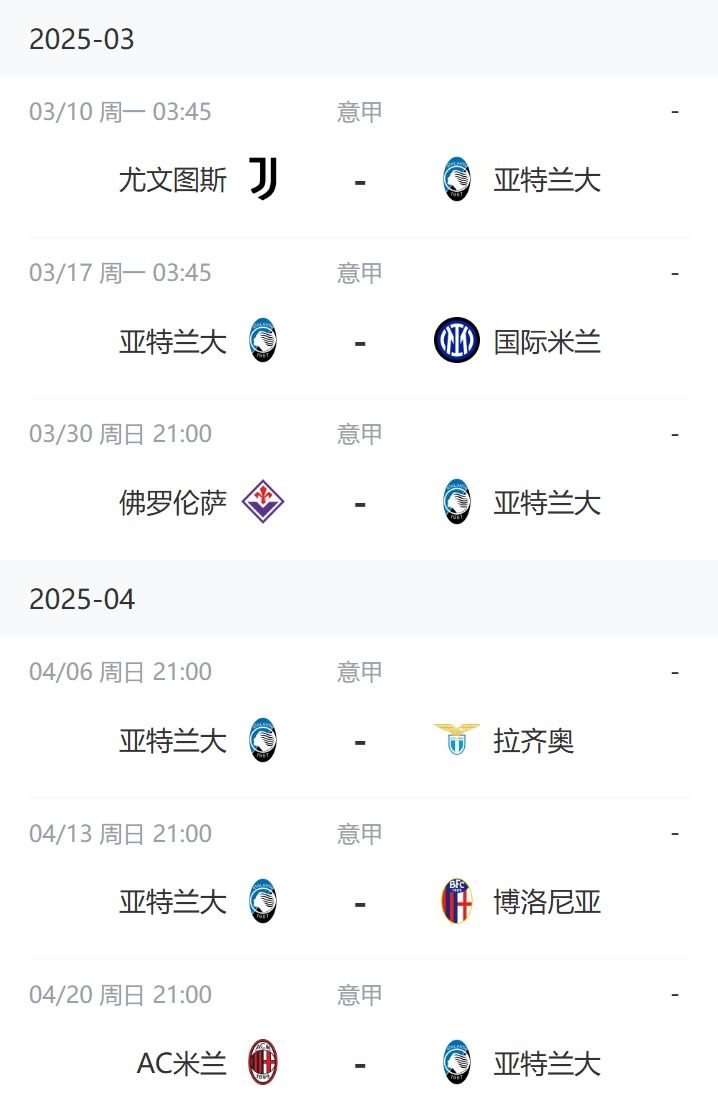 亚特兰大未来两月赛程