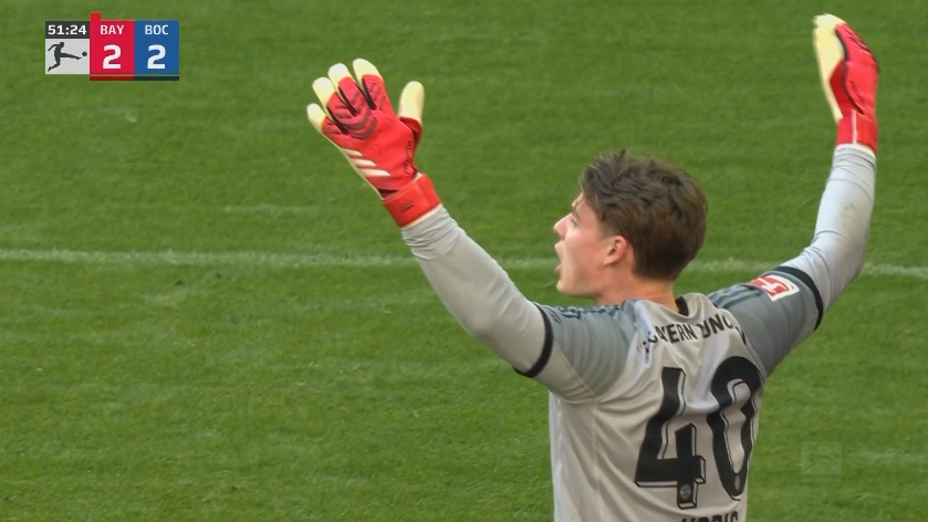 其中拜仁的第二粒丢球,在波鸿起传中前,乌尔比希就指出了后点的防守隐患,但拜仁无人协防,博伊在面对波鸿传中时冒顶,西索科将球顶进球门远角。