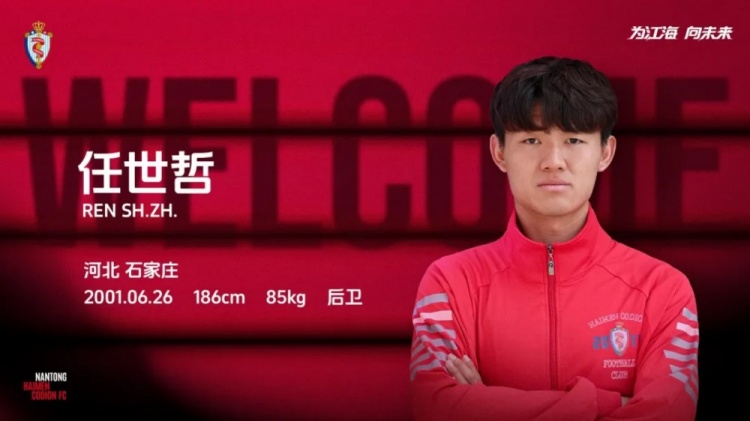 经与球员本人友好协商,任世哲正式加盟南通海门珂缔缘足球俱乐部。任世哲出生于2001年06月26日,身高186,场上司职后卫,河北石家庄人。新赛季任世哲将身披26号战袍随队征战中乙联赛,欢迎他的到来!