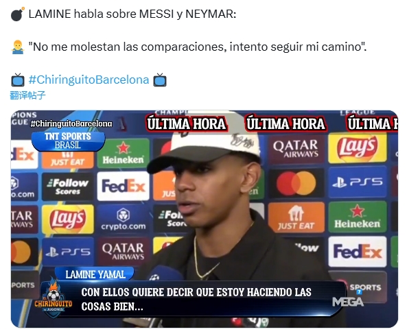 3月12日讯 欧冠1/8决赛次回合,巴萨3-1战胜本菲卡,总比分4-1晋级。赛后在接受采访时,亚马尔被问到自己和梅西、内马尔的对比一事。
