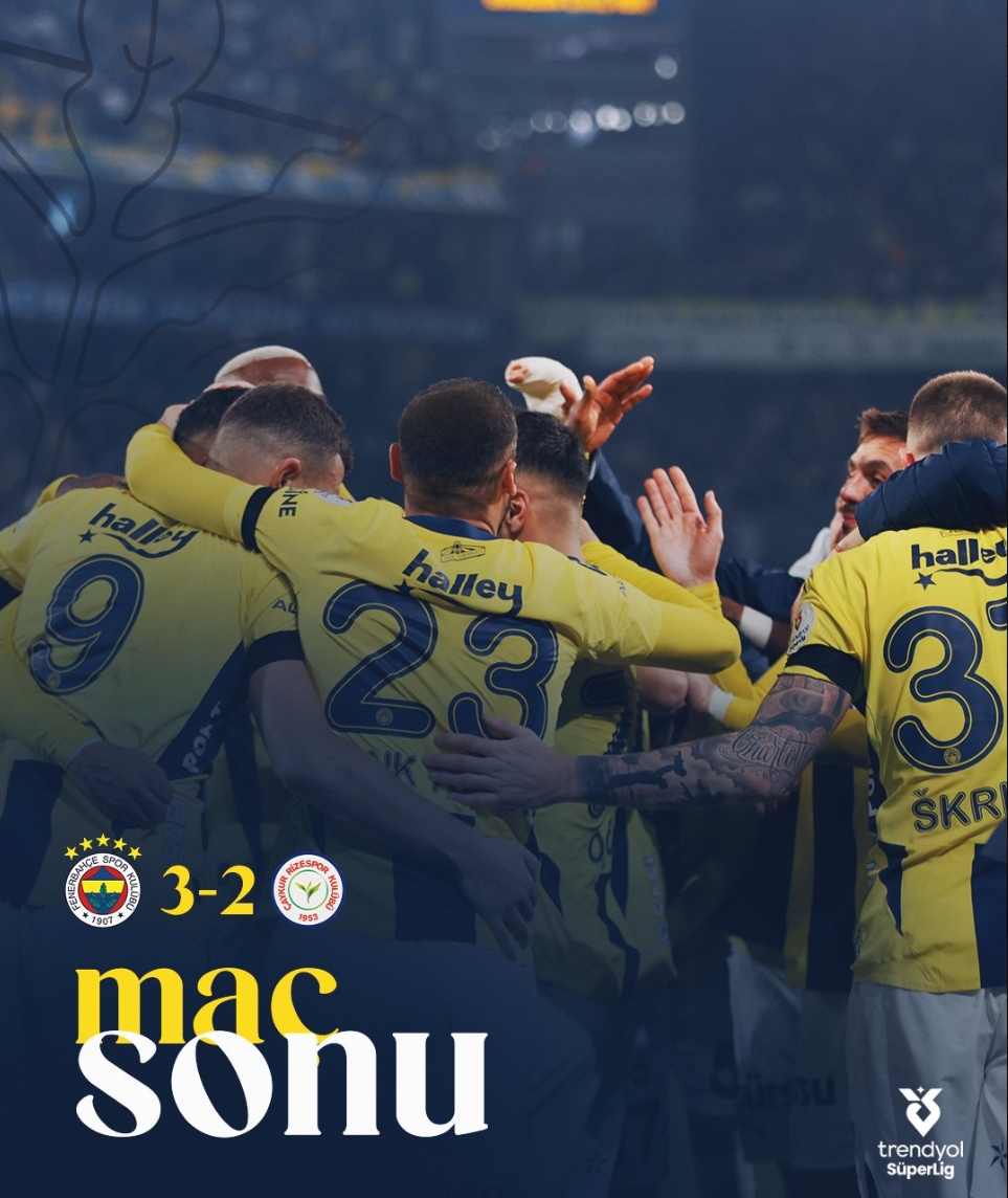 土超第22轮,费内巴切3-2逆转击败里泽斯堡,取得联赛5连胜。上半场,阿里索7分钟内连进两球,什克里尼亚尔进球被吹后造点,奥拉沃因两黄变一红被罚下,哲科点射扳回一球;下半场,费内巴切四中门框,哲科补射扳平,加扎尔两黄变一红被罚下,恩内斯里头球绝杀。