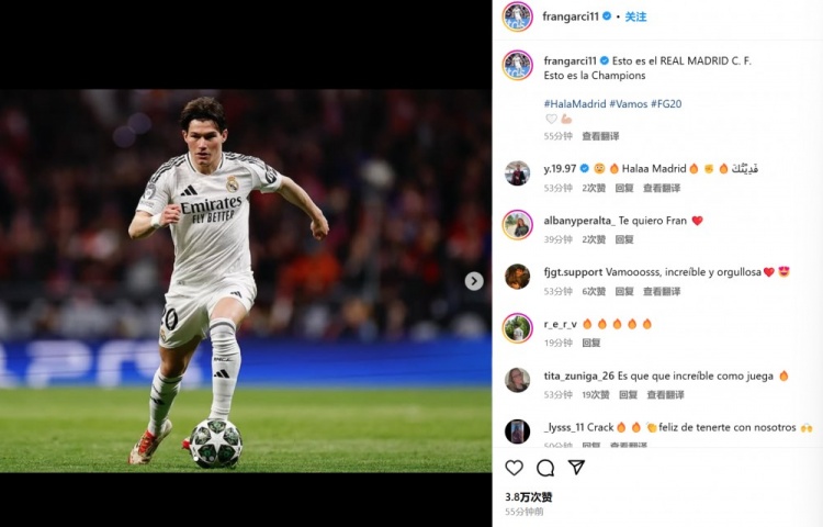 弗兰-加西亚同样晒出比赛照,并配文:“这就是皇家马德里!这就是冠军!”