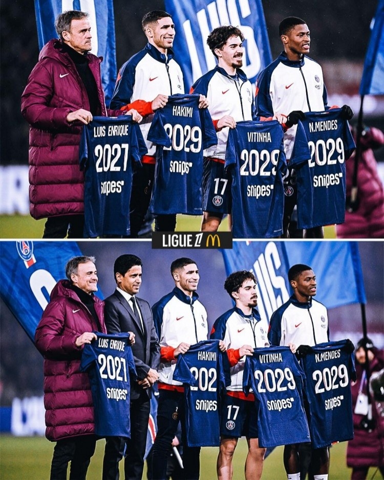 就在恩里克率队不断刷新纪录的时候,巴黎管理层也适时添柴加火。对阵利物浦的系列赛之前,恩里克和维蒂尼亚、努诺-门德斯、阿什拉夫等关键球员均收获长约,这剂强心针迅速发挥了作用,安菲尔德之旅见证了这套班底的成长与蜕变。