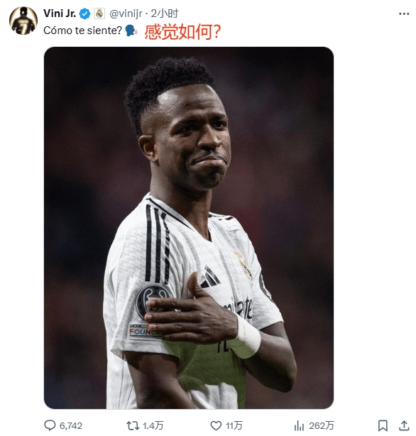 赛后维尼修斯在社媒连续更新4条动态(推特3条,ins1条)。