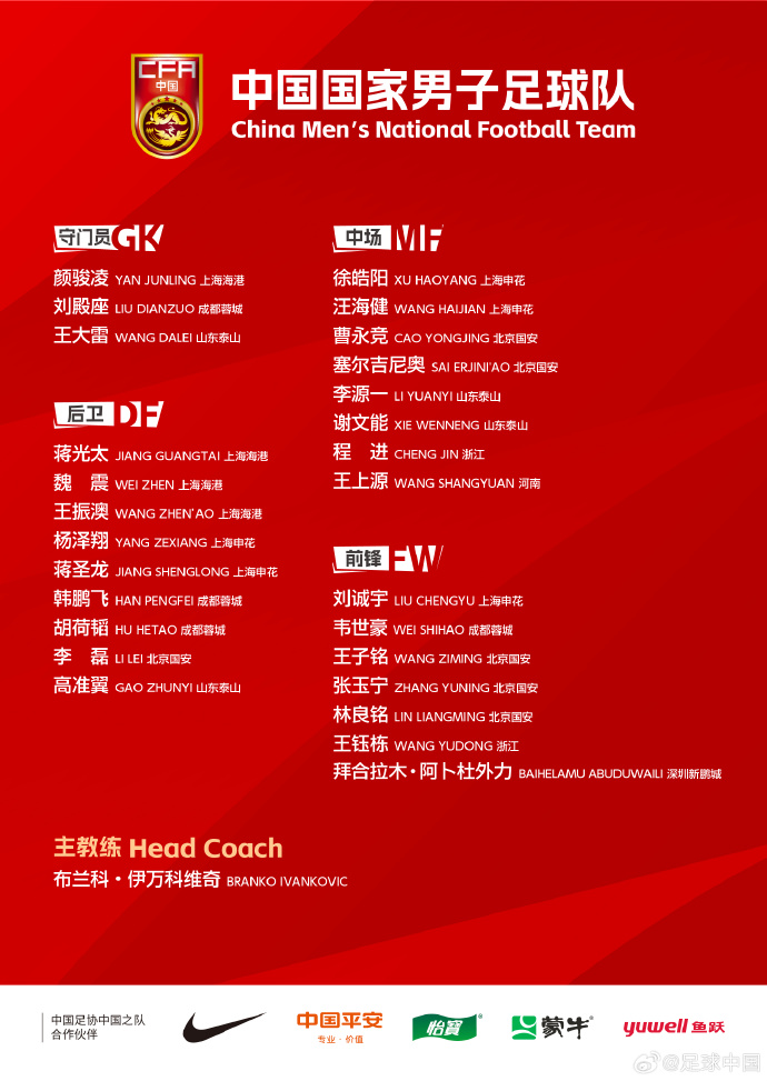 规则规定,中国队本场比赛至多报名23名人。从相关讯息渠道获知,根据球队的训练情况,落选球队本场比赛报名阵容的4名很可能分别是来自国青前锋王钰栋、刘诚宇、中场球员程进、边后卫王振澳,归化新人塞尔吉尼奥确定入选