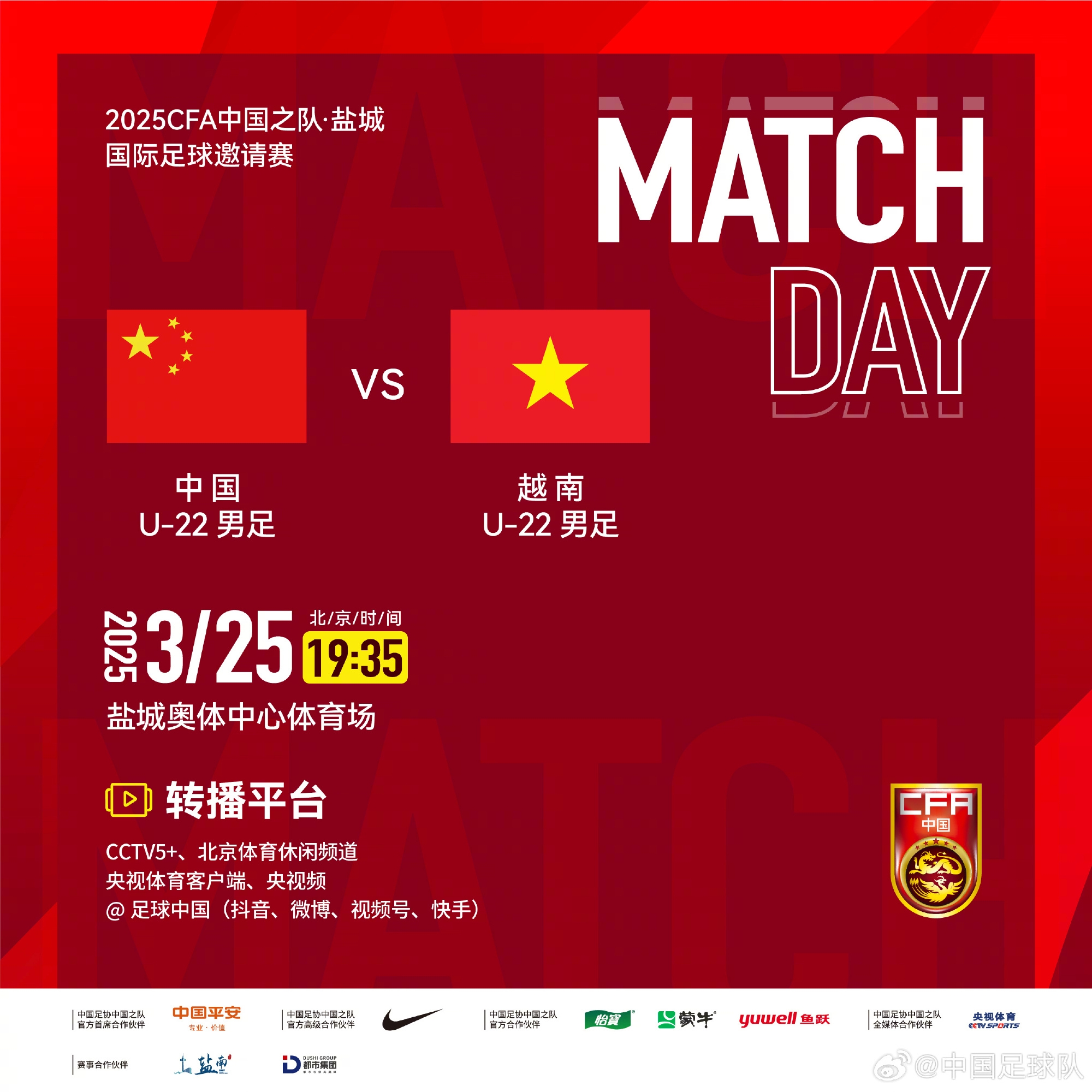 盐城国际足球邀请赛中国U-22男足vs越南U-22男足,中国队首发阵容