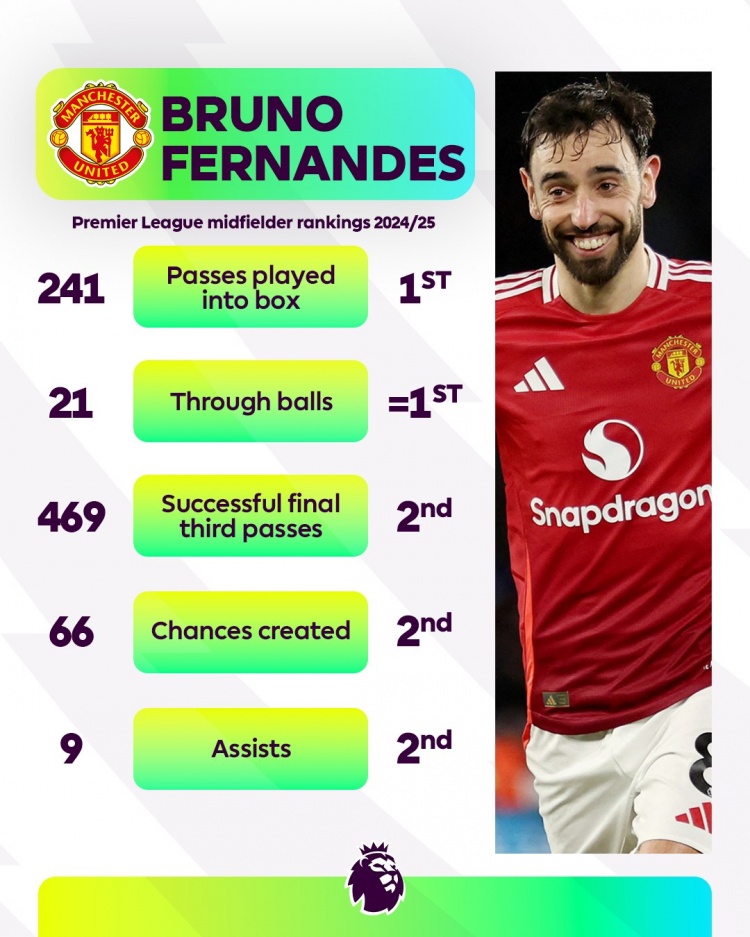 曼联大腿!B费本赛季传入禁区、直塞英超中场最多,助攻第二多