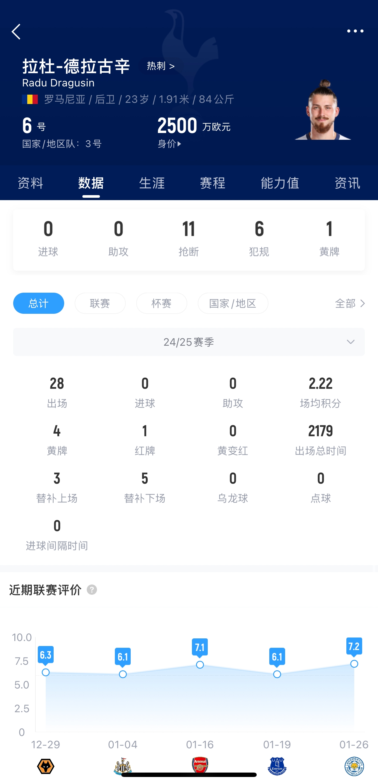 预计赛季报销!热刺官方:德拉古辛右膝十字韧带受伤,将接受手术