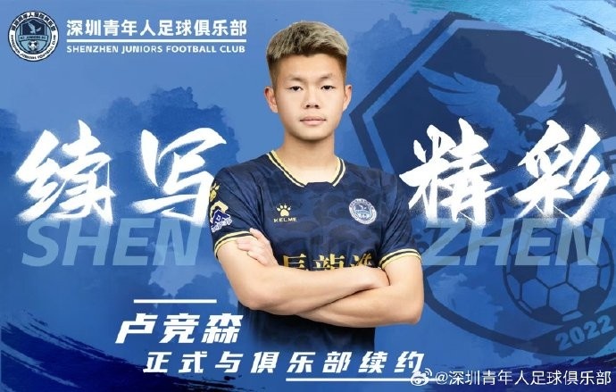 官方:中甲新军深圳青年人与陈雅俊、卢竞森、郑智铭完成续约